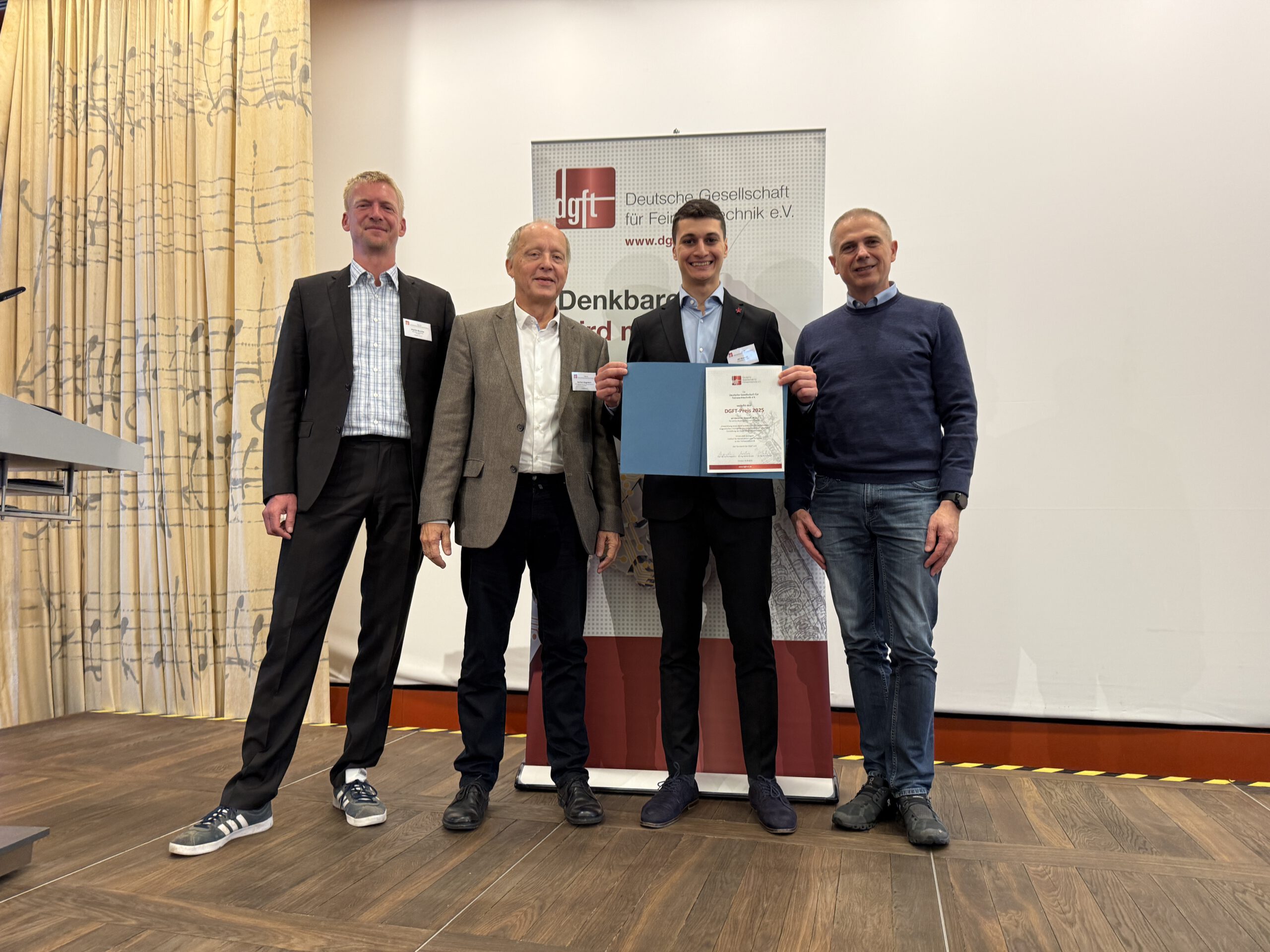 Die „DGFT Deutsche Gesellschaft für Feinwerktechnik“ stiftet in jedem Jahr einen Nachwuchspreis für die im vergangenen Jahr beste Diplom- oder Masterarbeit im Fachgebiet von Studierenden der mit der DGFT kooperierenden Universitäten.